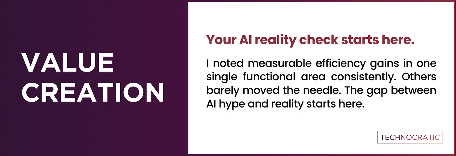 I saw Customer Support benefit the most from AI in 2025, with efficiency improvements as high as 50% in some cases. Other departments saw only 15-20%